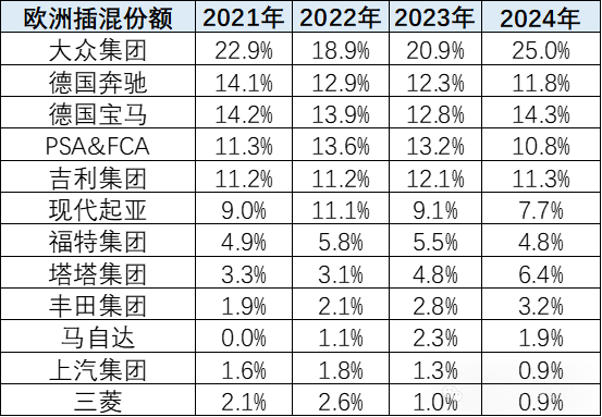 自主品牌在欧洲插混市场表现相对一般,占据份额不足4%。其中大部分份额是吉利的沃尔沃的份额,并非自主的真正出口,而比亚迪等的插混并未出口欧洲。
