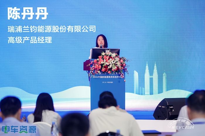瑞浦兰钧能源股份有限公司高级产品经理陈丹丹作了主题为《问顶电池助力新能源商用车绿色未来》的主题演讲。她从新能源商用车市场需求、发展痛点、电芯发展趋势以及瑞浦兰钧产品分享四个层面展开介绍享。她指出,问顶结构的创新及化学体系创新,支持商用车从长循序、快充、高比能、高可靠性、低成本五个方面全面升级。