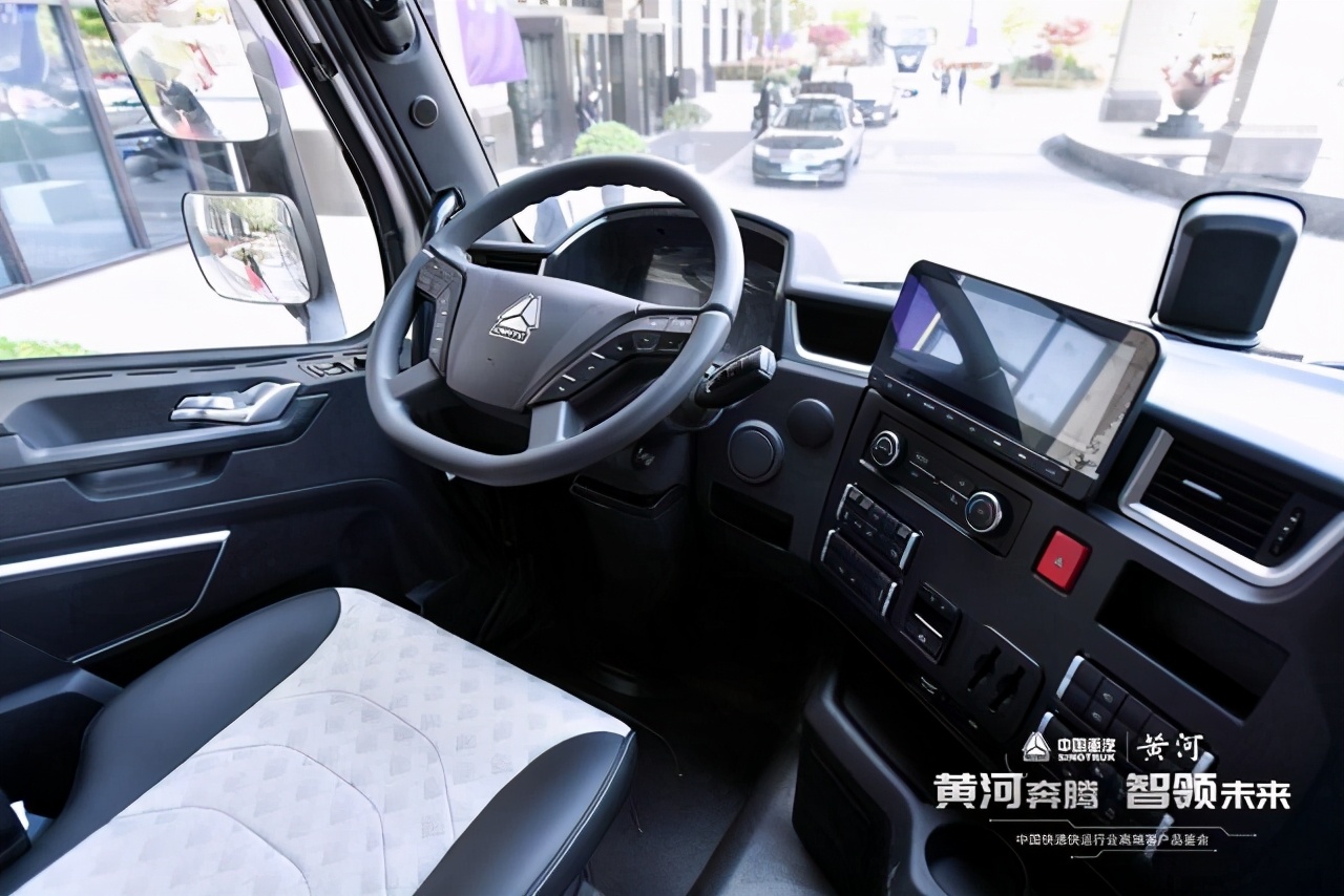 同时,中国重汽考虑到高端干线物流对智能管理、安全舒适驾驶的重视,以实践行动创新,攻难克艰,推出了一套先进主被动安全智控方案。整车已满足国际通行的L2级别的智能卡车标准。其智能辅助驾驶系统,涵盖了AEB自动紧急制动系统,有效避免碰撞。ACC自适应巡航定速系统,安全缓解司机驾驶疲劳;LDW车道偏离预警系统,声光告警及时提醒驾驶员;同时还以独创的车联网系统——智能通,为车辆运营管理提供无限可能,实现人、车、货高度融合,宜驾宜居。为保障驾驶员舒适安全驾驶,“新黄河”重卡以人本关怀进行设计及配置,集成式x型臂前后桥悬挂系统,辅以高强钢车架,率先实现高可靠性、轻量化、驾乘操控性完美结合。驾驶室气囊座椅,四气囊减震及横向稳定,精致环湾式工作台,多媒体中控大屏、全液晶仪表,带来轻松智控体验。行业首款D型多功能方向盘,操作更加便利,行车更安心。360度环视系统对整车周边的环境进行3D视图显示,可手动、自动对各方位视角进行切换。