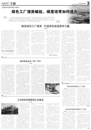 绿色低碳已成为推进新型工业化的生态底色,工信部日前印发的《绿色工厂梯度培育及管理暂行办法》将进一步引领绿色制造标杆发挥示范带动作用,推动行业、区域绿色低碳转型升级。下一步,将突出构建国家、省、市三级“纵向联动”和绿色工业园区、绿色供应链管理企业“横向带动”的绿色制造标杆培育新机制,推动工业绿色低碳发展,为高质量发展提供绿色动能。