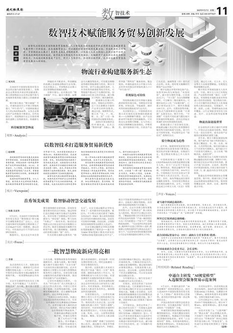 数智化正深刻改变国际服务贸易格局,人工智能技术的快速进步和应用将为未来服务贸易发展开辟一片新蓝海。在本届服贸会上,可以捕捉到前沿科技的发展方向、专业服务的应用场景,多家物流企业展示了其在智慧物流领域的成果,以及通过大数据和AI结合供应链平台助力实现高效调度的创新成就。数字技术与智能化手段深度融合,大幅提升了企业的业务效率和创新能力,不仅通过服务集成平台化、新兴业态场景化,推动供应链升级,也为全球服务贸易高质量发展注入新动能。