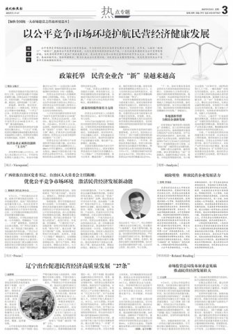 公平竞争是市场机制高效运行的重要基础,作为推动民营经济高质量发展的关键力量,近年来,从破除“玻璃门”“旋转门”到落实公平竞争审查制度,从优化营商环境到保护知识产权,一系列政策举措持续为公平竞争保驾护航,为民营经济开辟了更加广阔的发展空间,更让民营企业得以在规范透明的环境中专注主业、深耕细作。同时,各地积极作为,创新举措频出,聚力打造法治化营商环境,为民营企业发展保驾护航,促进民营经济在公平竞争中不断做强做优做大。