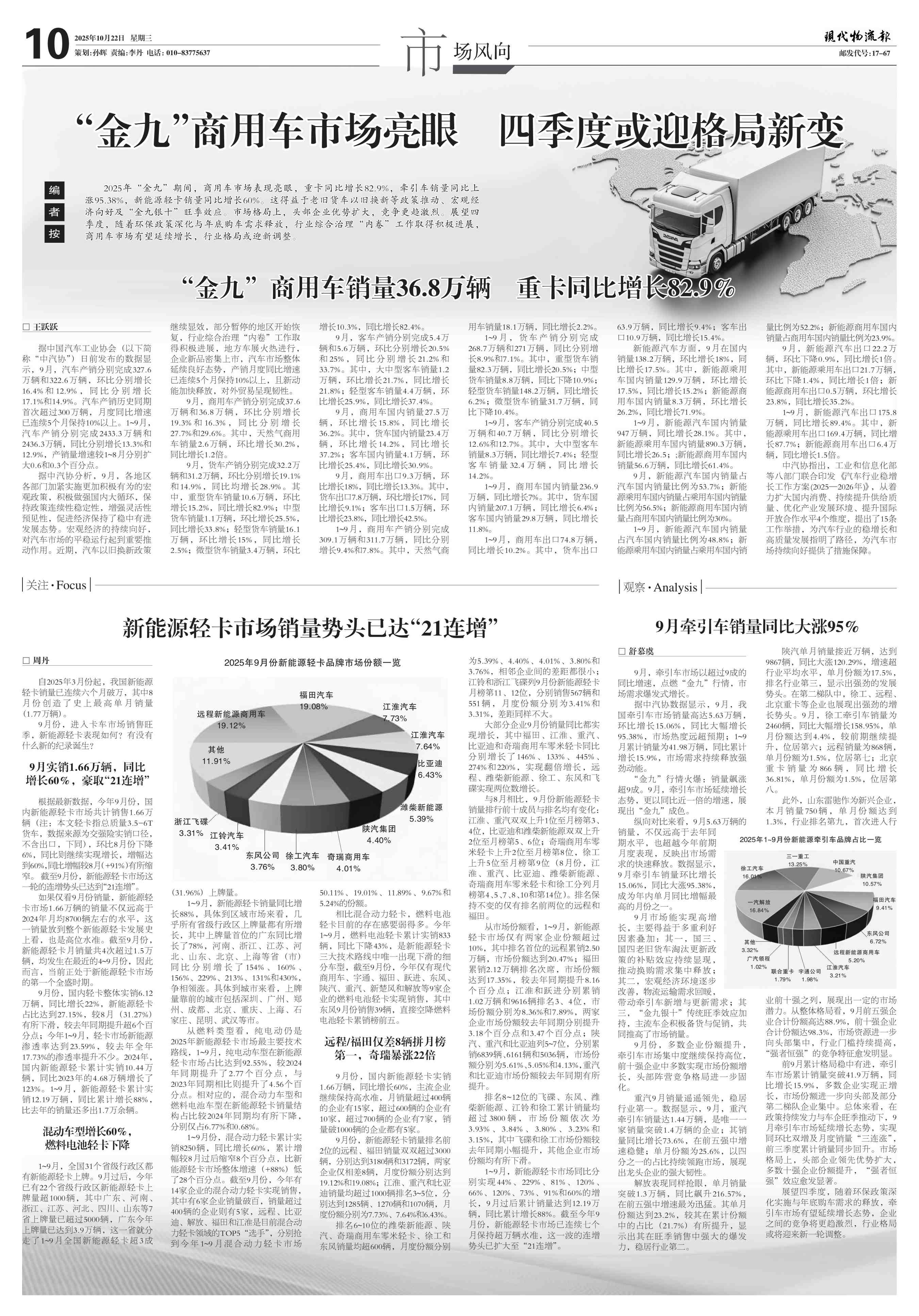 专题|“金九”商用车市场亮眼 四季度或迎格局新变