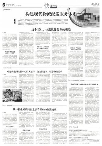 11月1日,为期20天的双11网购高峰期快运服务正式拉开序幕。每年的双11大促都是对快递物流行业的年度压力考验,今年双11明显速度更快、体验更好。从智慧仓储到智慧分拣再到智慧配送,快递企业开启“科技模式”;日均1700列高铁快运专列将“当日达”从承诺变为现实,铁路部门织就覆盖全国的4小时物流网。全链路智能化解锁物流配送,实现科学调配运能,精准投放运力,优化服务举措,为双11网购高峰提供了安全方便快捷的快运服务。