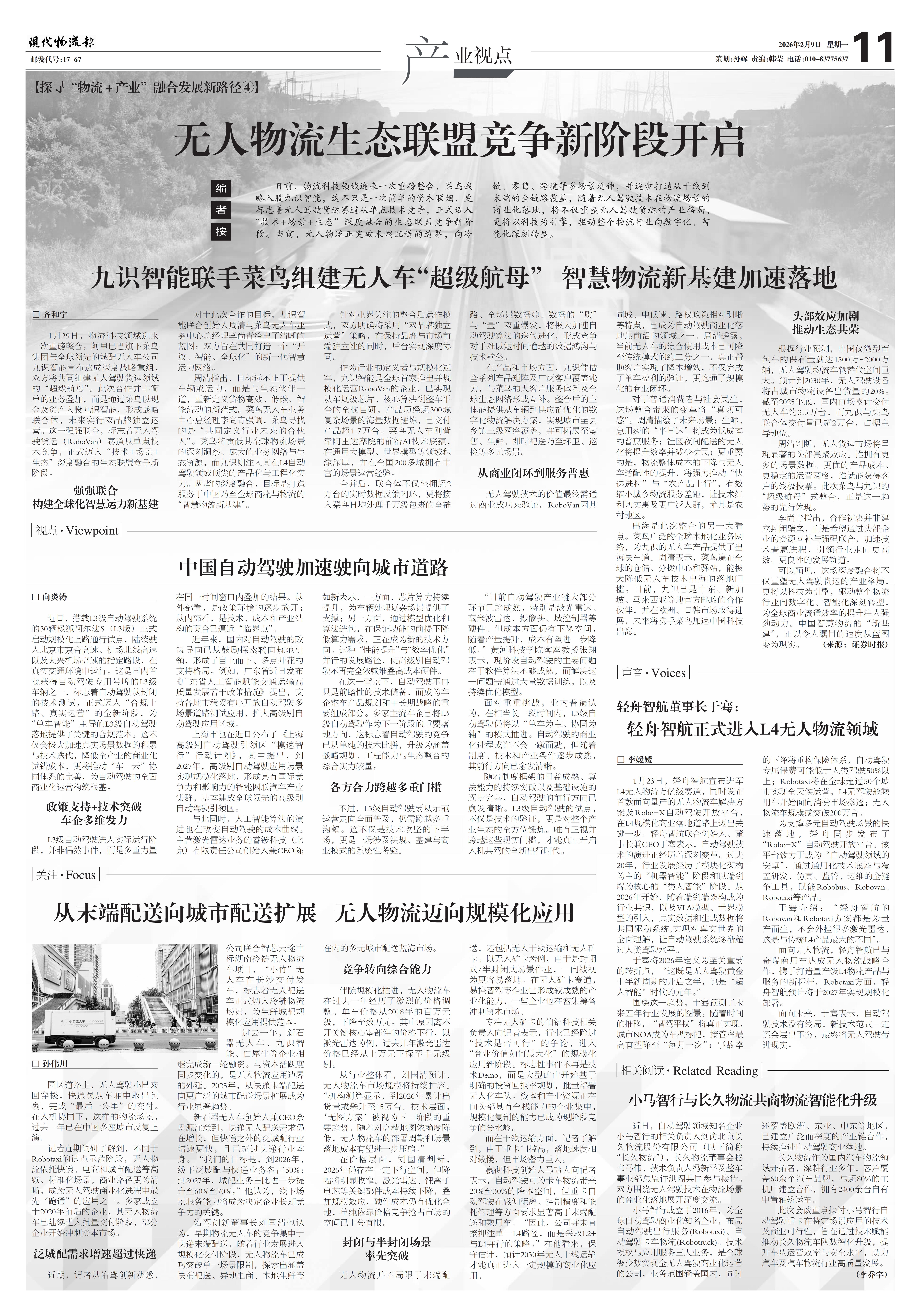 从末端配送向城市配送扩展 无人物流迈向规模化应用