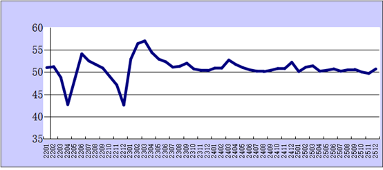 其中,2025年12月份,制造业生产指数为51.7%,较上月上升1.7个百分点;非制造业商务活动指数为50.2%,较上月上升0.7个百分点。