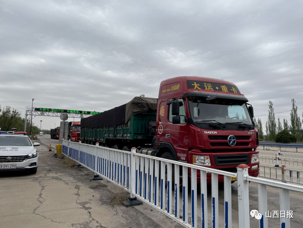 联通晋冀蒙京4地的御西高速口,是大同市经济发展的重要通道,过往车辆主要运输生产生活、能源、原材料等重要物资。在收费广场,一辆挂着河南车牌的红色货车的驾驶室两面都被贴上封条,这辆车按规定路线往返于高速口与经济开发区之间,货车司机正在等待货主单位派专人前来接应。