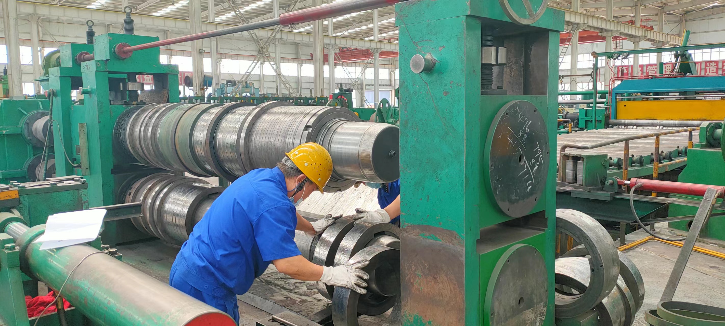 史少波告诉记者,工厂在设备更新和高端创新的道路上正在不断迈进。在机器轰鸣的生产线前,他亲自讲述了自动化设备的轧辊自动替换过程。“在没有更新设备之前,轧辊的替换都是由人工来完成的。一个轧辊的重量有几百公斤,两三个人都很难抬得动,只能借助吊车辅助操作,整个过程费时费力。平均下来,要将整个生产线的轧辊都更换一遍,如果由6个工人操作,就需要8到10个小时,这样光是换轧辊就会耽误一天的时间。”史少波介绍。
