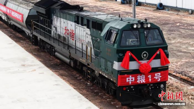 10月11日,中粮集团旗下中粮贸易新产季粮食集港班列“中粮1号”在黑龙江省双鸭山市首发启程驶向北良港。