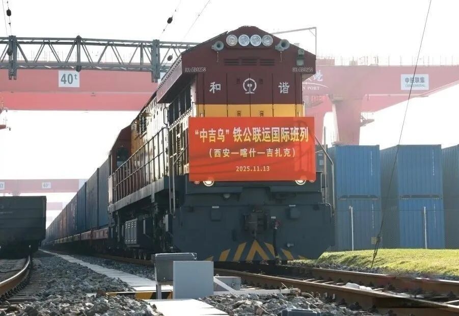 11月13日,满载45个集装箱汽车零配件的X9015次列车从西安国际港站缓缓驶出,一路向西经新疆喀什出境,穿越吉尔吉斯斯坦,最终开往乌兹别克斯坦吉扎克,标志着陕西首趟“中吉乌”铁公联运国际班列顺利开行。