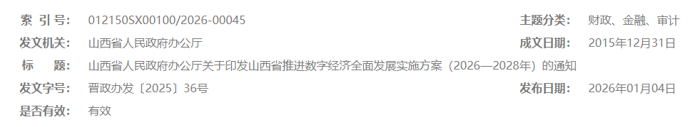 山西省人民政府办公厅关于印发山西省推进数字经济全面发展实施方案(2026—2028年)的通知