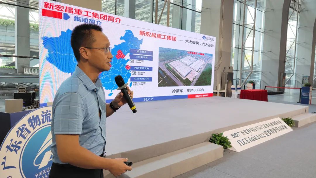 昇辉新能源有限公司董事长张毅、亘信科技(广东)有限公司张晋博士、广州威骏汽车贸易有限公司董事长杜立容、中国重汽集团新能源汽车研究院院长助理李炳志、江苏宏昌天马物流装备有限公司副总经理王志先、广东云韬氢能科技有限公司战略发展部副总监陈兴威分别围绕公司业务和冷链物流创新低碳发展助力实现“双碳”目标进行分享。