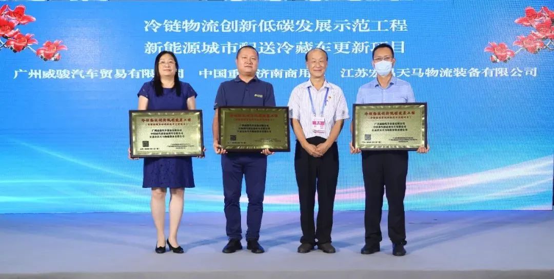 会议期间还举行了中国重汽HOWO蓝立方纯电动保温车新品发布和首批两个冷链物流创新低碳发展示范工程颁牌仪式。