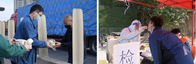 为了维持员工在疫情期间的正常生活,公司在餐饮方面提供热饭、热菜、热汤,安排专人给坚守在车上的驾驶员按时送饭,用行动守护在岗员工,用关怀送去疫情下的温暖。并及时对所有员工进行核酸检测,筑牢疫情安全防线。