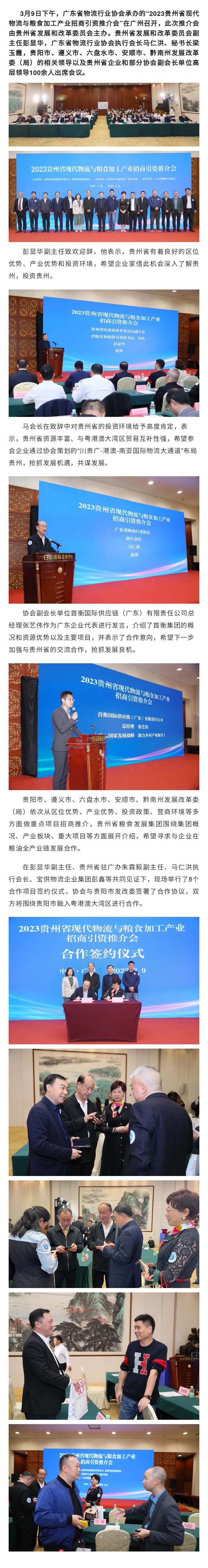 协会动态 | 2023贵州省现代物流与粮食加工产业招商引资推介会在广州召开