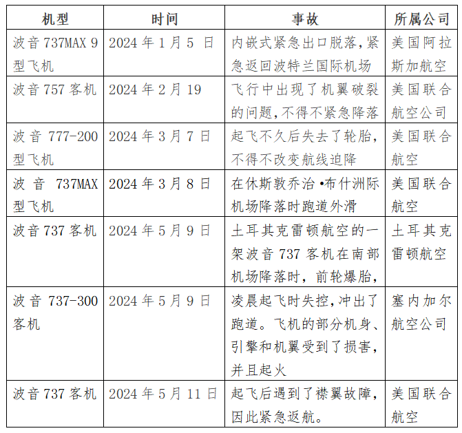 2024年1月5日,美国阿拉斯加航空的一架波音737MAX 9型飞机由于内嵌式紧急出口脱落,不得不紧急返回波特兰国际机场。