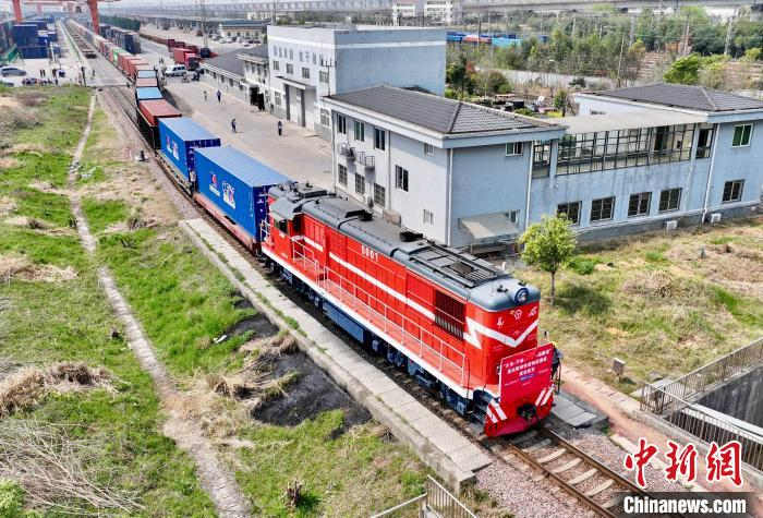 3月26日,一列装有跨境电商货物的海铁联运班列从浙江义乌鸣笛启程。 郑峰 摄