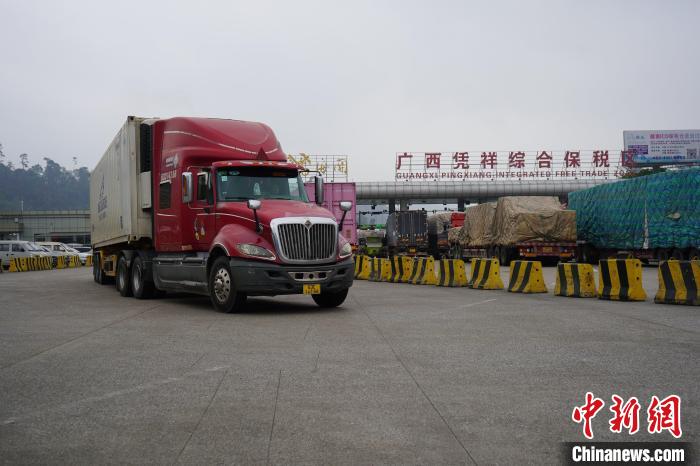 图为越南籍货车经凭祥综合保税区驶入广西凭祥市内。赵匡 摄