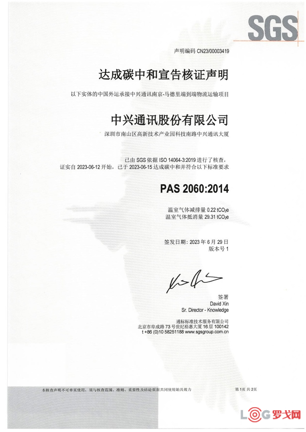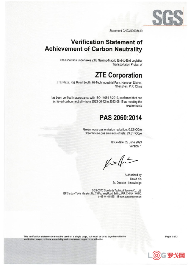 6月29日,中国外运取得了来自SGS的达成碳中和宣告核证声明,标志着中国外运联合汉莎航空服务中兴通讯的南京-马德里国际空运“端到端”碳中和实例获得圆满成功。
