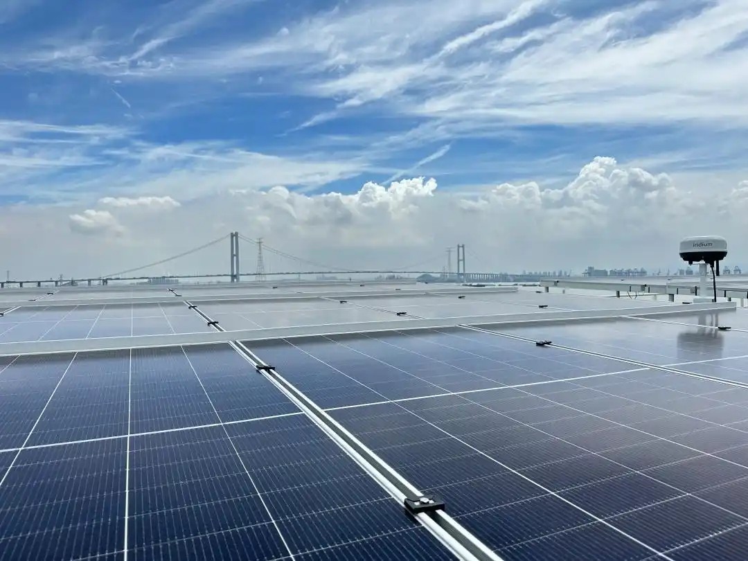 ●全球最大船载光伏系统。配备峰值功率302.8千瓦的分布式太阳能光伏并网系统,为目前同类船舶装载的最大光伏系统。年发电量达41万度,可节省燃油约111吨、减少二氧化碳排放345.9吨,相当于年种植约3.8万棵树(以单棵树年固碳9千克计算)。船舶配备中压岸电接收系统,靠港期间100%使用岸上电力,船舶停泊在港每天可减少二氧化碳约21吨。同时船舶还采取了一系列其他节能措施,如搭载消涡鳍、扭曲舵等能效优化创新设计,综合能效设计指数(EEDI)达行业最优水平,全生命周期碳强度较传统船舶降低约35%。