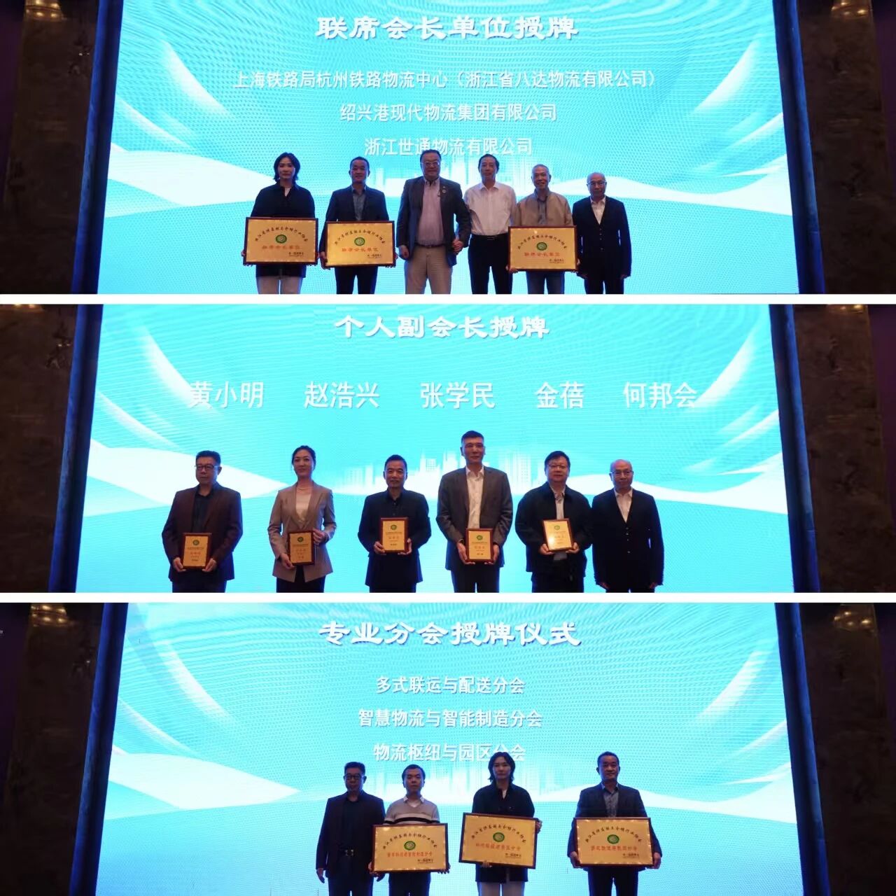 浙江省供应链与仓储行业协会借助大会举行了隆重授牌仪式,分别为22家协会联席会长单位、常务副会长单位、副会长单位授予牌匾,为5位个人副会长颁牌。为进一步完善协会服务架构,凝聚行业发展合力,大会上正式成立并授牌了多式联运与配送分会、物流枢纽与园区分会和智慧物流与智能制造分会,并宣读了同意筹备国际供应链与外贸服务分会、低空经济与无人机产业分会、农业供应链与冷链分会的批复文件。
