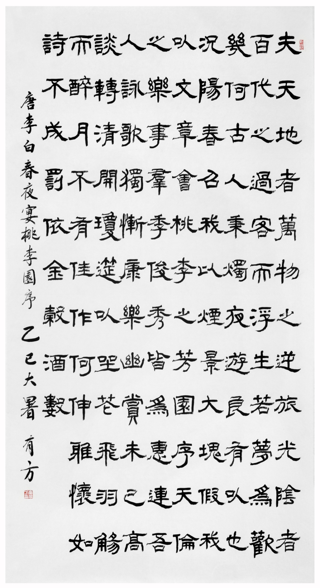 本次书法展布置在孔子博物馆临展二厅,展览面积800平方米。展览以“四道”为脉络分为四个板块,聚焦经史典籍、书院学统、临古修习与近现代学人精神,既有巨幅榜书的雄浑气象,也有小楷册页的精致典雅,既见碑学的骨力洞达,亦显帖学的流转韵致。作品不仅展现黄有方教授对传统书法的深入理解,更体现其对中华文脉传承的自觉担当。