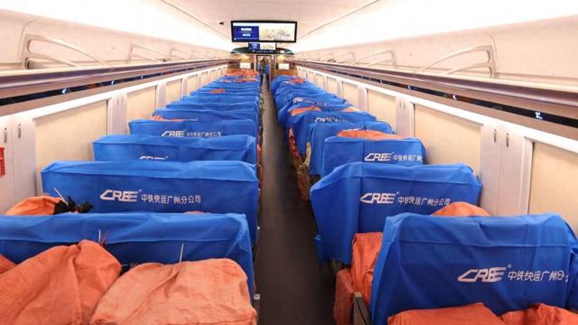中铁快运人士对记者表示,2017年“双11”期间,中铁快运在京沪高铁复兴号列车上推出高铁快运“极速达”服务,实现京沪间货物10小时送达;2018年“双11”期间,中铁快运采用复兴号动车组首次在北京至长沙间开行高铁快运货运服务,货物采用复兴号动车组的一节车厢运输,为了运送更多的货物和码放方便,将车厢座椅全部拆掉。