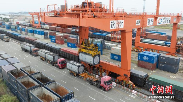 “钦州港东站作为西部陆海新通道衔接陆海的核心枢纽,今年车站的货物发送量持续增长,截至目前发送量达716.4万吨,同比增长18.7%,累计12次刷新单日装车和单日装卸车纪录。其中原煤、铝土矿、铜精矿等大宗品类发送量增速尤为突出。”国铁南宁局沿海铁路公司钦州港东站站长韦文康表示。
