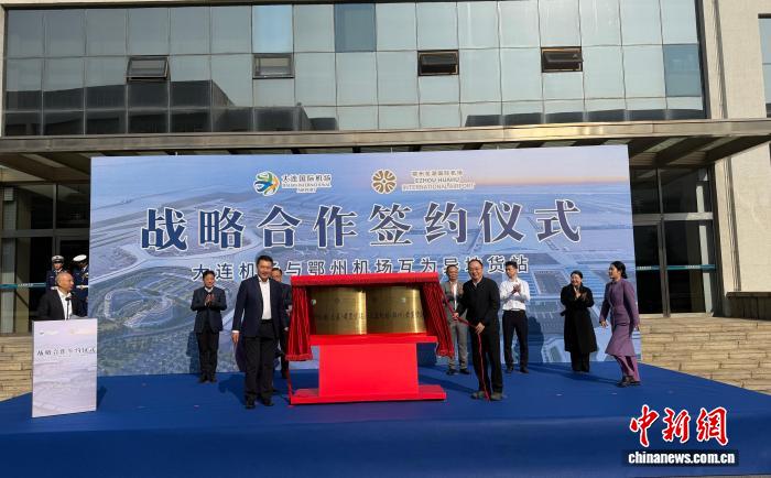 大连国际机场集团有限公司与鄂州花湖国际机场战略合作框架协议签署暨互为异地货站揭牌仪式12日在辽宁大连举行,标志着东北地区首座跨省异地货站正式启用,东北与华中地区联手搭建双向国际物流通道。
