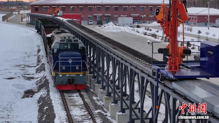 11月16日,中国铁路口岸首台海关智能化矿产品全断面采制样设备在同江铁路口岸投用。图为列车抵达查验场地,智能化矿产品全断面采制样设备准备采样。 徐志强 摄