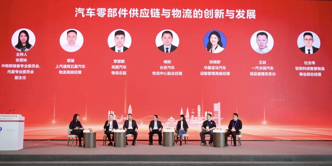 互动沙龙由中物联装备专业委员会、托盘专业委员会副主任张晋姝主持,邀请了长安汽车物流中心副总经理梅刚、岚图汽车物流总监章登鹏、华晨宝马汽车运输管理高级经理张晓野、上海通用五菱汽车物流高级经理覃瑞、一汽丰田汽车部品管理系系长王剑、驭势科技智慧物流事业部总经理杜志伟以“汽车零部件供应链与物流的创新与发展”为主题,围绕人工智能在汽车零部件物流全流程的降本增效应用,相关标准的贯彻如何促进行业标准化与规范化,国际供应链体系的搭建与汽车物流国际服务能力提升,以及供应链数智化、行业协同如何驱动企业开拓海外市场等内容展开深入讨论。