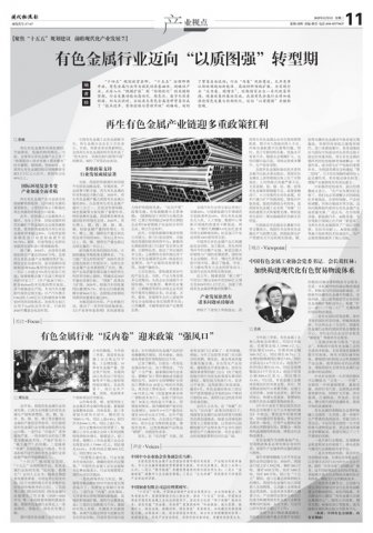 “十四五”规划收官在即,“十五五”征程即将开启,有色金属行业作为国民经济基础性、战略性产业,正迈入从“规模扩张”到“结构优化”的关键转型期,行业发展动能向高端化、绿色化、数字化深度转换。但与此同时,全球再生有色金属原料贸易形成了“技术进步、资源控制与管理升级”的格局,制约了贸易自由流动;行业“内卷”风险蔓延,无序竞争从传统领域向新能源、高端材料领域扩散。为实现行业“反内卷、稳增长”,近期国家出台一系列政策举措,随着政策的落地实施,我国有色金属行业将加速推进绿色发展与结构优化,迈向“以质图强”关键转型期。