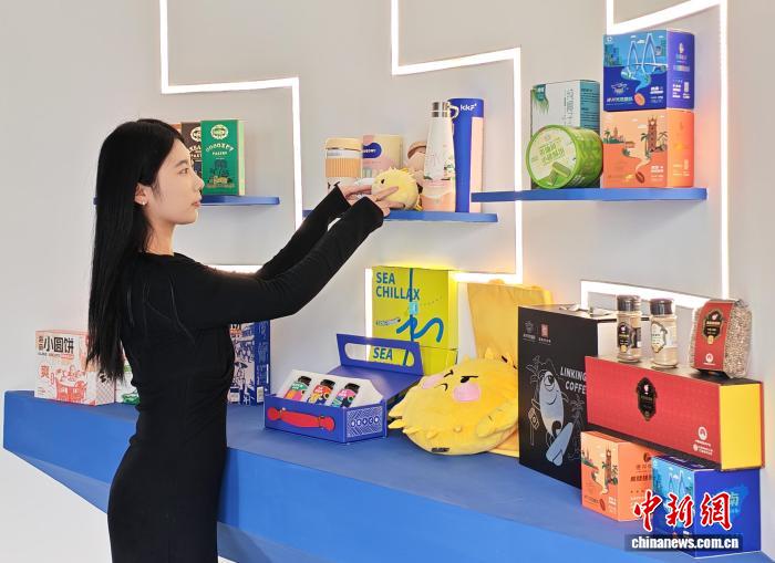 12月5日,海口市跨境电商协会秀英区运营中心工作人员正在直播选品区上架“海南特礼”。记者 王子谦 摄