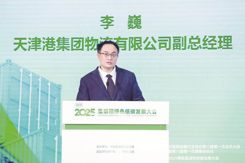 天津港集团物流有限公司副总经理李巍在2025集装箱绿色低碳发展大会上分享了天津港在绿色港口建设方面的实践经验与丰硕成果。