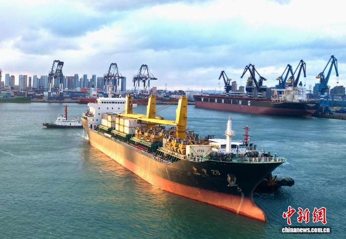 1月1日,“中宇28”轮从烟台港起航。张超 摄