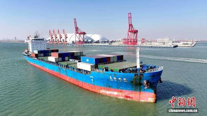 据山东东营市东营港经济开发区13日消息,1月12日,“东海之源”集装箱货轮在东营港一突堤集装箱码头完成装卸作业离泊启航,这标志着黄河入海口城市东营首条内外贸同船航线成功开航。