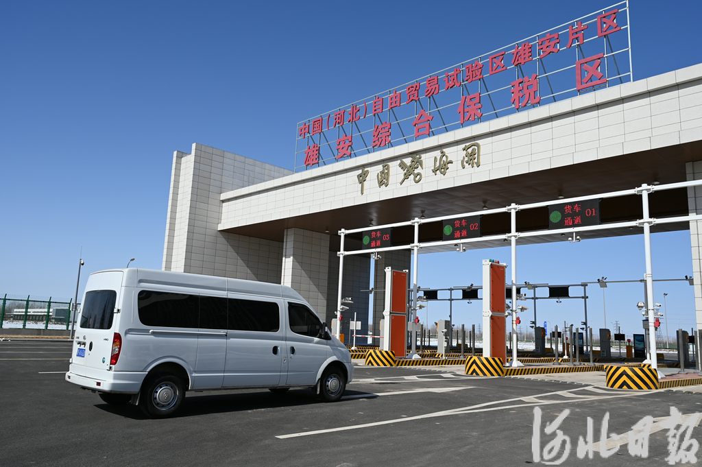 一辆装载有15万个压电石英的车辆通过雄安综合保税区卡口驶入。河北日报资料片