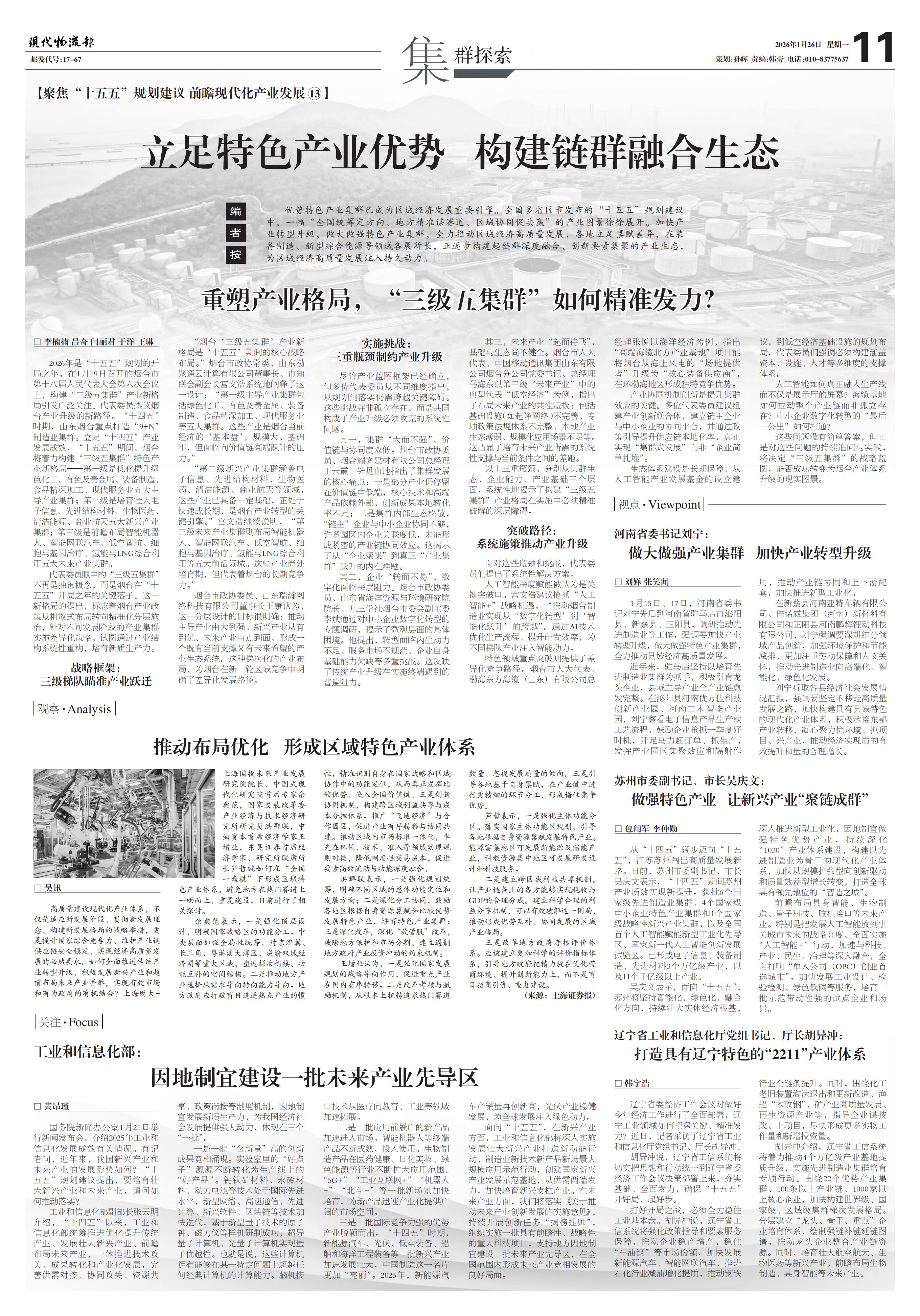 优势特色产业集群已成为区域经济发展重要引擎。全国多省区市发布的“十五五”规划建议中,一幅“全国统筹定方向、地方精准谋赛道、区域协同促共赢”的产业图景徐徐展开。加快产业转型升级,做大做强特色产业集群,全力推动区域经济高质量发展,各地立足禀赋差异,在装备制造、新型综合能源等领域各展所长,正逐步构建起链群深度融合、创新要素集聚的产业生态,为区域经济高质量发展注入持久动力。