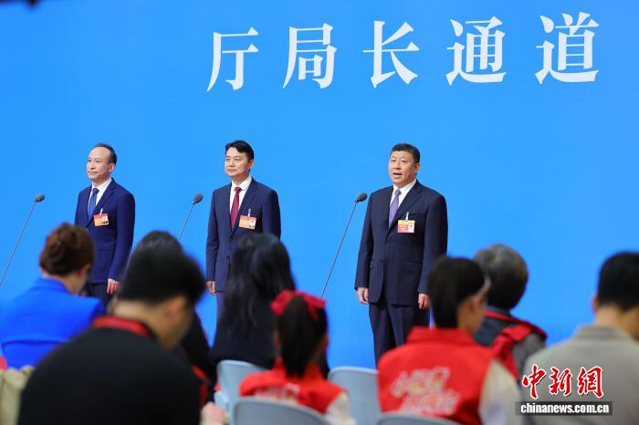 1月29日,海南省七届人大五次会议举行“厅局长通道”,海口海关关长高瑞峰(右)回答记者提问。记者 骆云飞 摄