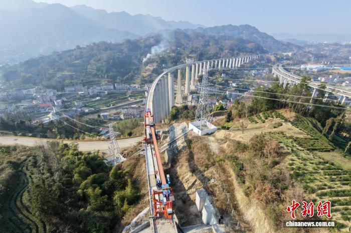 三峡枢纽茅坪港疏港铁路完成全线T梁架设任务。孙宏伟 摄