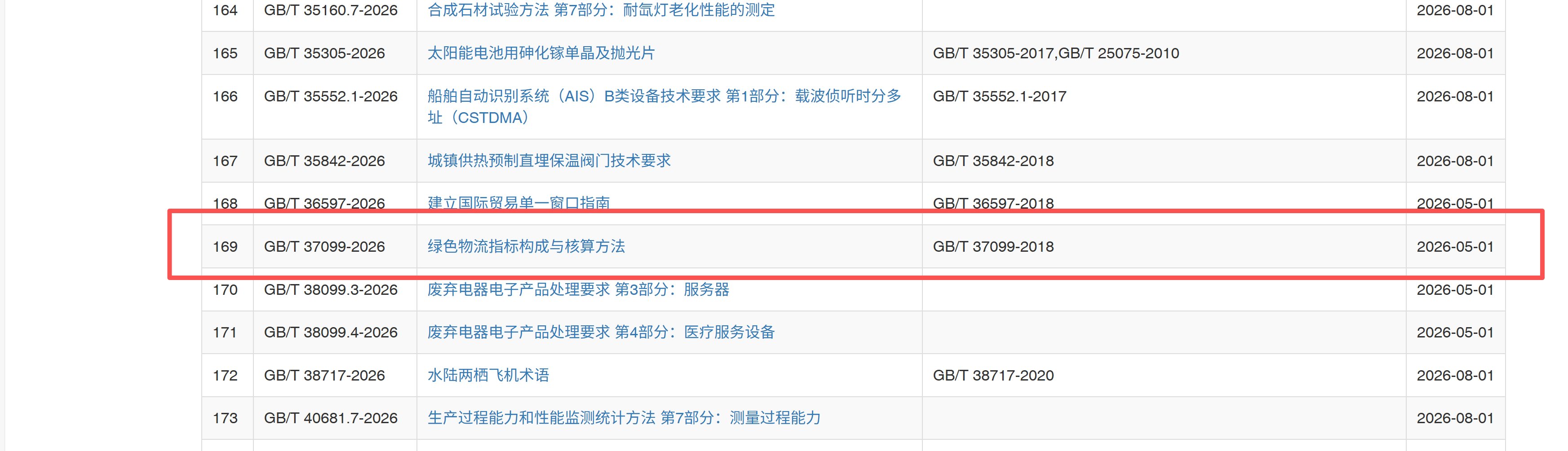 《绿色物流指标构成与核算方法》是一项修订标准项目。该标准首次发布于2018年12月28日,实施于2019年7月1日。