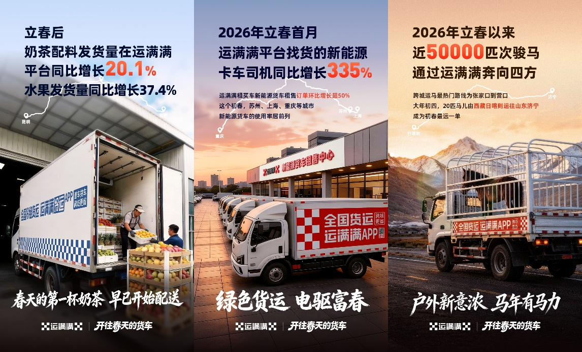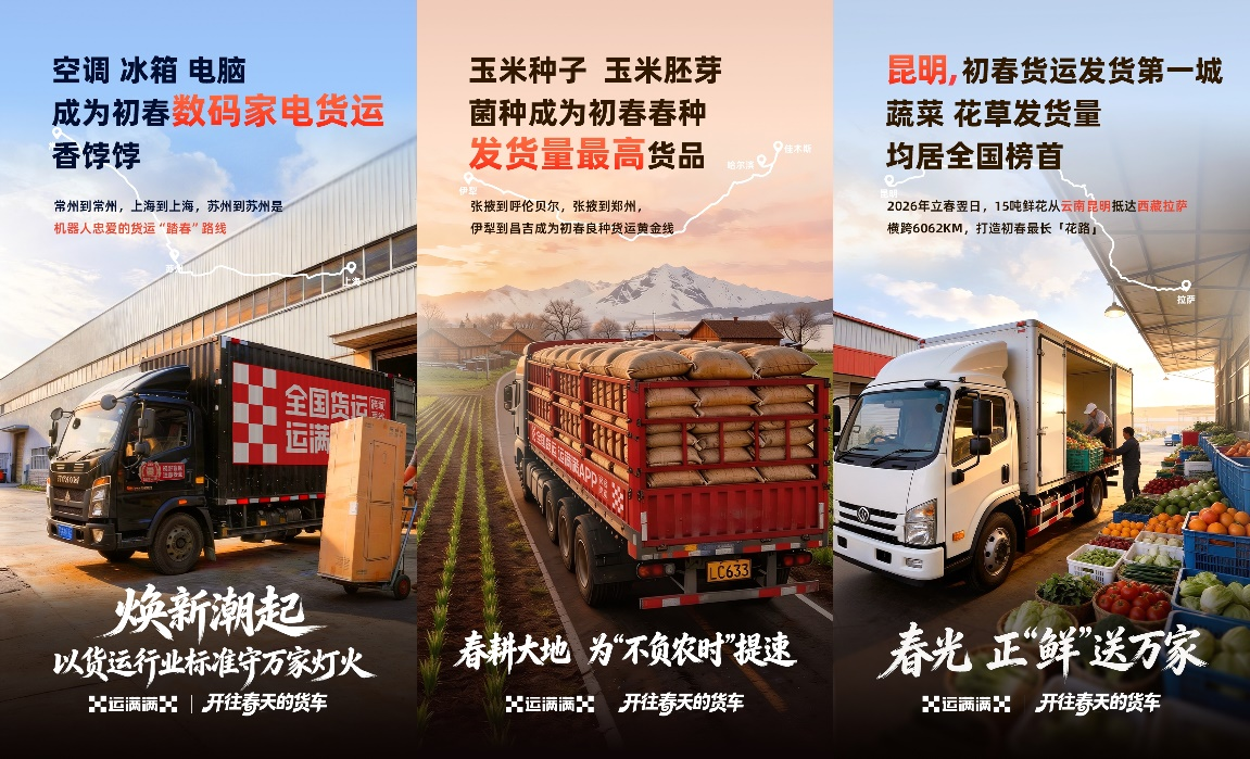 重点城市依旧领跑货运热潮。运满满平台数据显示,2026年立春后首月,全国核心发货城市依次为昆明、苏州、上海、成都、哈尔滨,收货前五城分别为上海、临沂、重庆、郑州、潍坊。货运网络南北联动、东西互通,让春日好物快速跨区域流通。