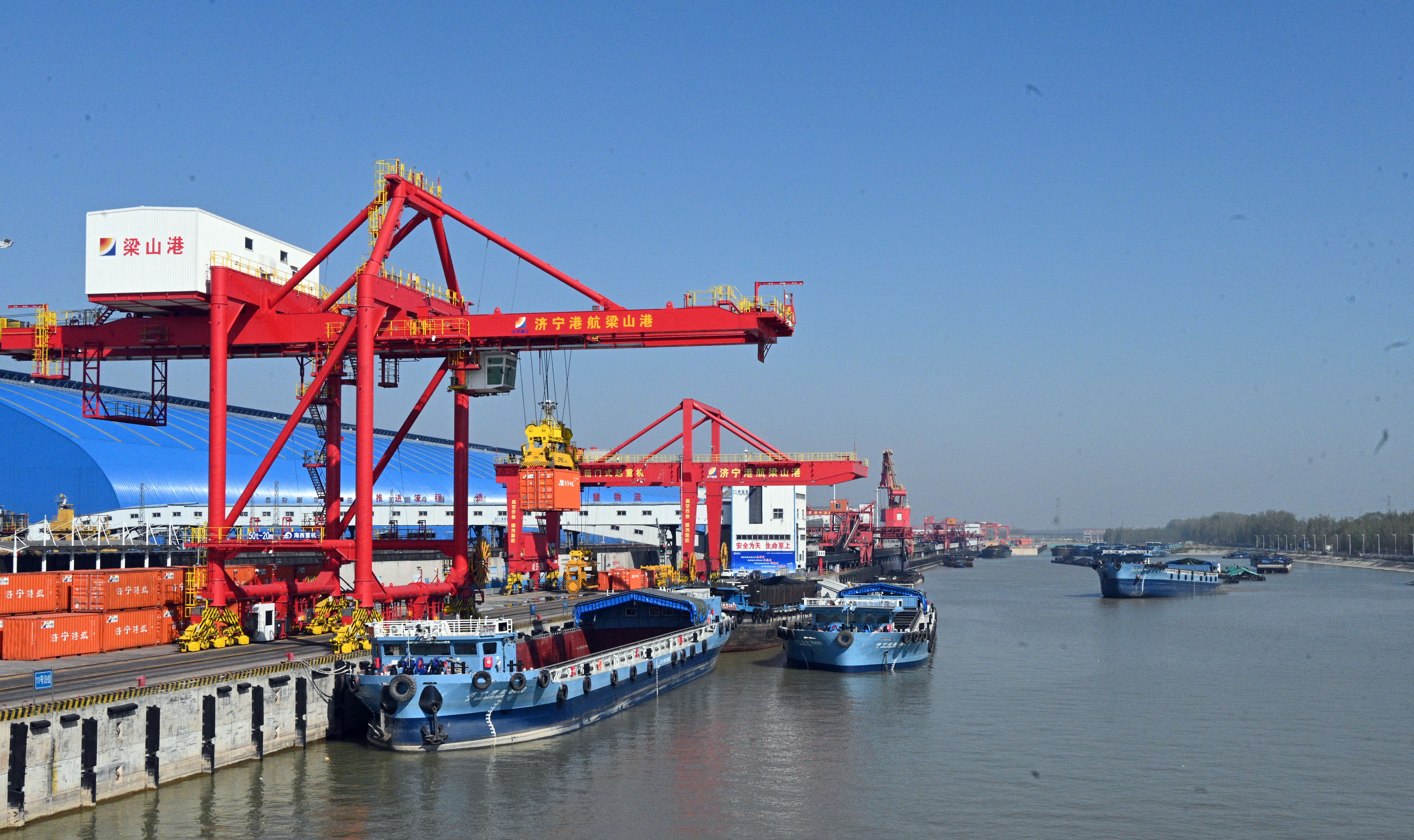 近日,济宁市京杭运河“智慧航道”、济宁港航龙拱港“内河智慧港口”及曲阜“农村公路+文化旅游”三项交通强国试点顺利通过省级验收,标志着济宁在构建现代综合交通运输体系上迈出坚实一步。今年1-2月,全市完成交通投资20.8亿元,为全年发展打下“硬基础”。在此推动下,济宁港货物吞吐量逆势上扬,达到2016.7万吨,同比增长26.2%;集装箱吞吐量9.2万标箱,同比增长70.4%,在全产业发力的成绩单中,内河航运无疑是最耀眼的“明珠”。