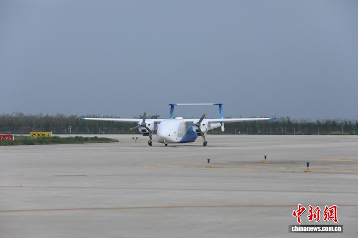 图为HH-200航空商用无人运输系统首架机平稳降落。杨英琦 摄