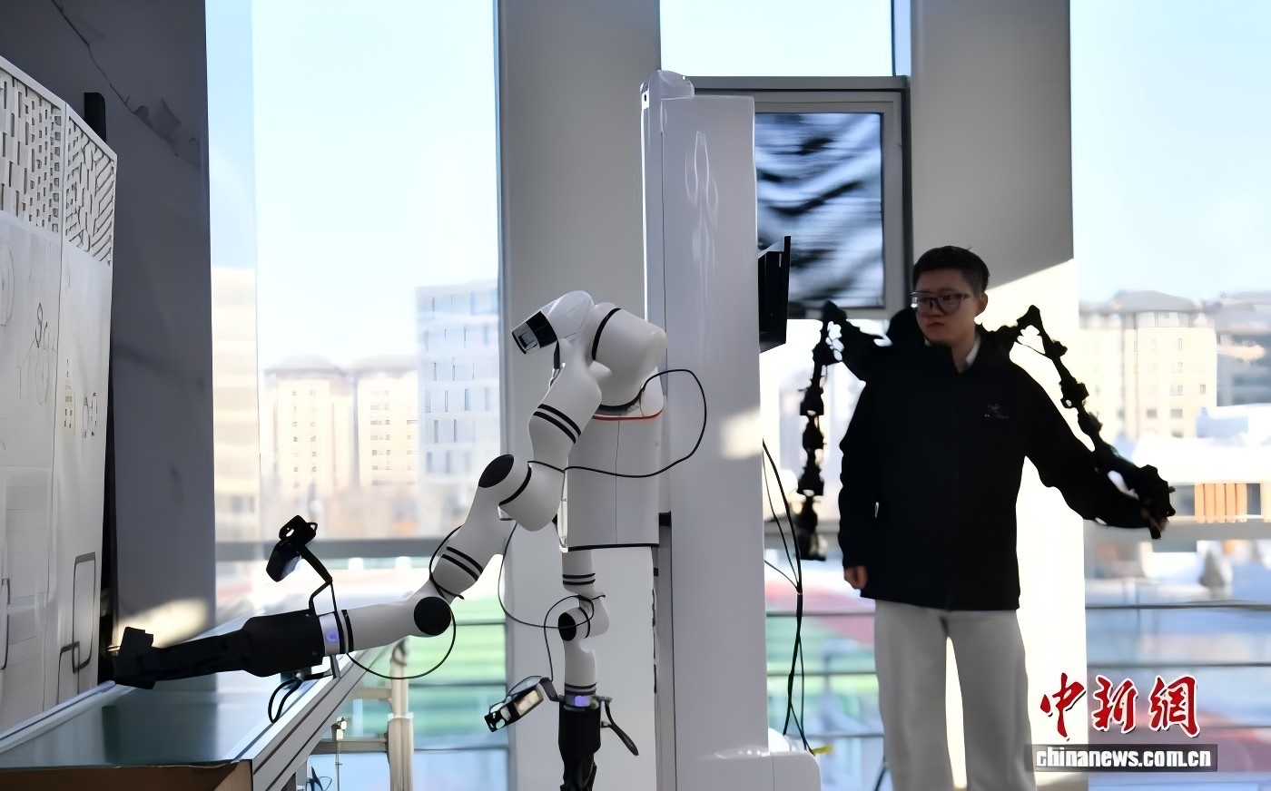1月8日,河北雄安新区中国雄安集团数字城市科技有限公司具身智能训练场内,机器人在进行物流装配应用场景训练。 中新社记者 韩冰 摄