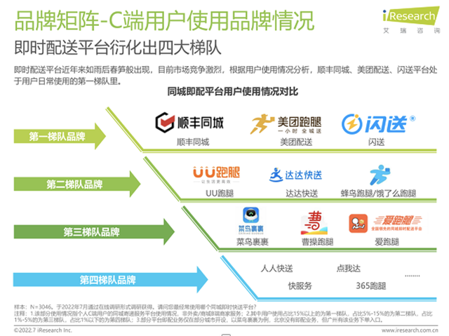随着移动互联网以及同城配送基础设施的不断完善,叠加消费者对配送速度的需求不断提高,即时配送平台近年来如雨后春笋般出现,历经激烈的市场竞争和行业洗牌,目前同城即配行业的市场格局已非常明显。