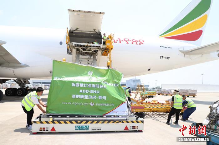 载有埃塞俄比亚精品咖啡豆的航班抵达鄂州花湖国际机场。(资料图)鄂州花湖国际机场供图