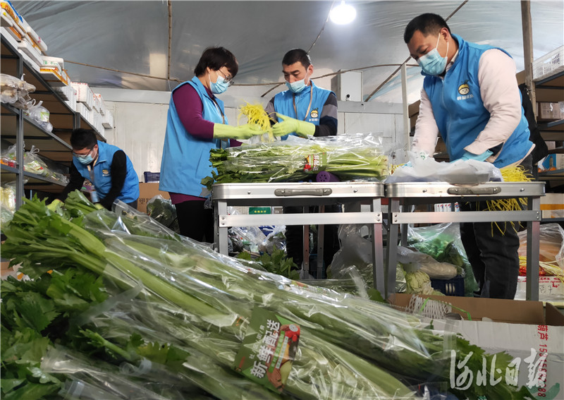 自1月5日起,该平台积极联系张家口市沽源县、衡水市饶阳县等地的蔬菜供应商保证供应,在人员到岗不足的情况下,工作人员几乎放弃所有休息时间,连续工作,分拣配送,尽力保证订单及时发送,将新鲜蔬菜、肉蛋等生活必须品送到居民手中。 记者赵海江摄影报道