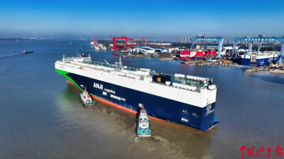 10月23日,招商局金陵船舶(江苏)有限公司建造的9500车级甲醇汽车运输船“安吉常盛”轮,在扬州海事全流程保障下顺利完成交付开航。此次开航不仅标志着安吉系列 PCTC(汽车运输船)订单提前八个月圆满收官,更成为扬州海事助力地方船舶产业升级、推动绿色航运发展的生动实践。