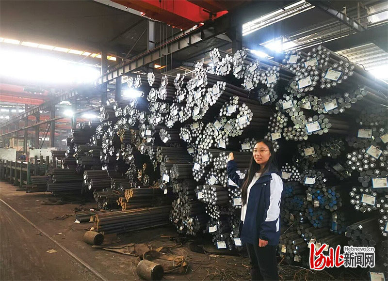3月16日,邢台军华机械科技有限公司原料仓储区,企业人员介绍刚刚集采的轴承钢原材料。河北日报记者 姜 艳摄